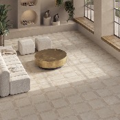 Baldosas imitación mármol realizadas en porcelánico de alta calidad con acabado STEPSAFE, ideal para espacios públicos.